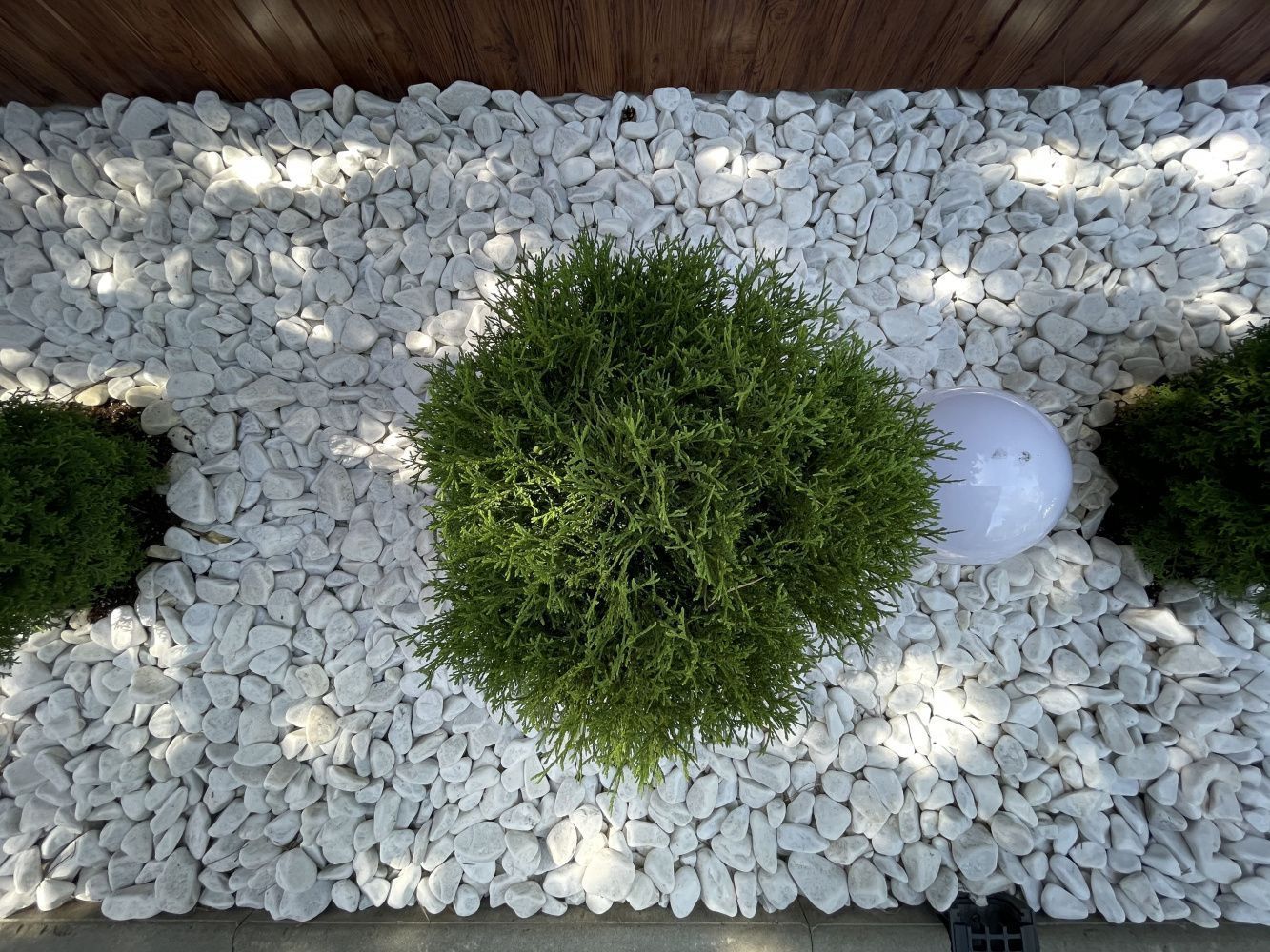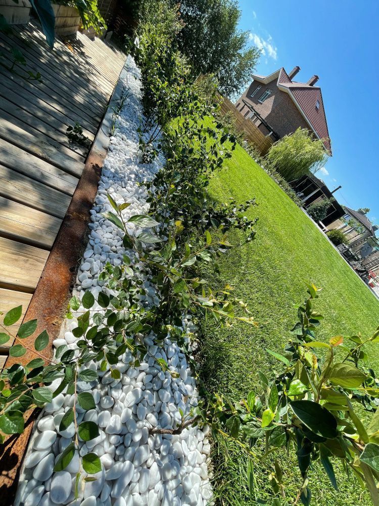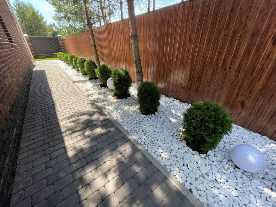 Также я настоятельно не рекомендую делать белую отсыпку, за исключением случаев, когда это продиктовано специальным дизайном, спроектированным хорошим дизайнером. Белая щебенка или галька – это очень активный, доминантный материал, заработает как надо он только в таком же активном окружении, с белой, например, модернистской архитектурой и очень искусно подобранным растительным ассортиментом.