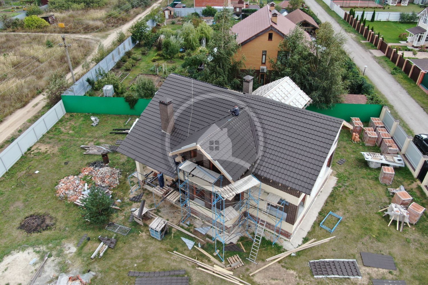 Темные насыщенные цвета смотрятся на кровле эстетично и благородно. Они отлично подходят ко многим оттенкам стен, однако, следует иметь в виду, что чем насыщеннее цвет, тем быстрее он выгорает под влиянием ультрафиолетовых лучей и других природных факторов.