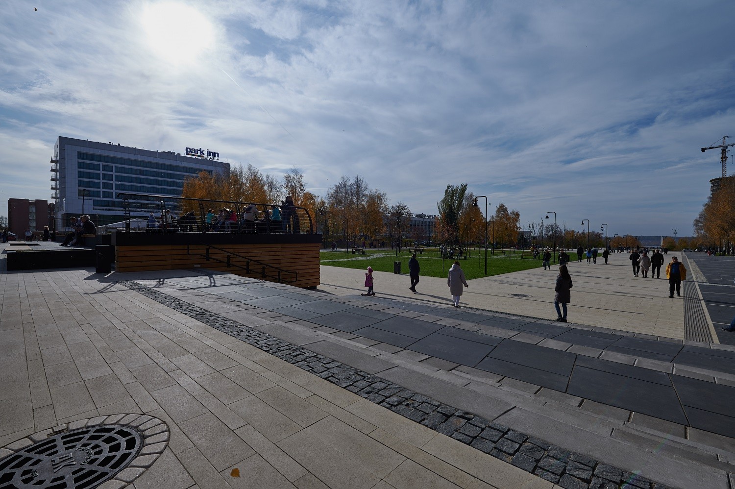 Обновленная Центральная площадь Ижевска в 45 тысяч квадратных метров может одновременно вместить около 100 тысяч человек. Пространство выполнено в духе современных архитектурных тенденций. Как отметила архитектор и один из авторов проекта Любовь Варламова, идеи для Ижевска искали по всему миру, каждый элемент старались сделать не только красивым, но удобным и полезным.