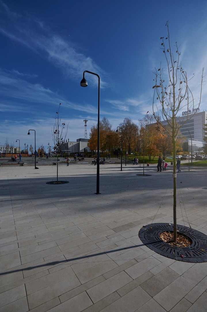"Центральная площадь города - это торжественное, парадное пространство. И белый - это максимально нарядный цвет. Кроме того, он отлично гармонирует с основными зданиями, которые выходят на площадь. Поэтому архитектурные и ландшафтные решения работают в едином ансамбле", - пояснила Любовь Варламова.