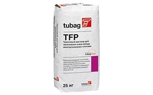 Водонепроницаемый, эластичный раствор для заполнения швов tubag TFP. Особенно предназначен для широких швов до 5 см, например при укладке многоугольных плит. Высокая адгезия с боковыми стенками плит. Преимущественно для пешеходной нагрузки. Пригоден для категории N1 согласно ZTV Wegebau.