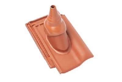 Проходная черепица с вентиляционно-санитарной насадкой Braas используется для обустройства выхода сантехнических стояков и для дополнительной вентиляции подкровельного пространства и чердаков.