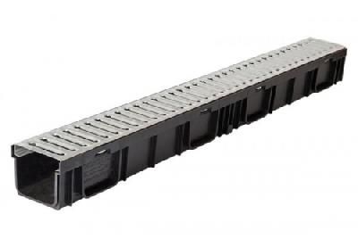 Комплект Gidrolica Light лоток водоотводный пластиковый со стальной решеткой предназначен для организации поверхностного водоотвода с территорий, подверженных небольшим нагрузкам, например: территории жилых загородных домов, тротуары, в парковых и пешеходных зонах и др.