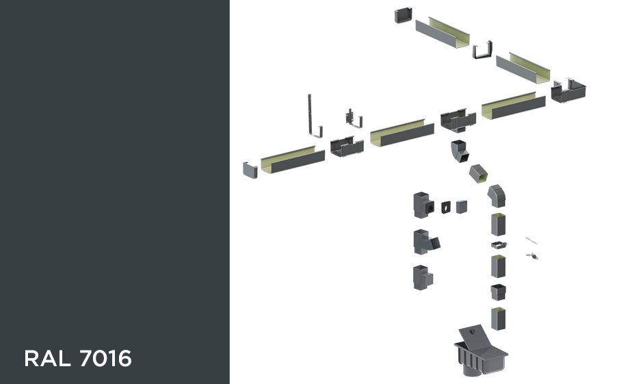 Квадратная водосточная система KROP, RAL 7016 - это премиальный импортный продукт. К преимуществам системы относятся экологичность (во время производства используются нетоксичные стабилизаторы), симметричный желоб квадратного сечения, универсальные фитинги желоба "2 в 1" и повышенная стойкость к УФ-излучению. Гарантия на механическую прочность 30 лет.