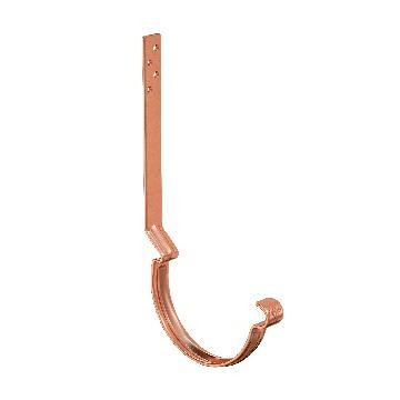 Поставляется с комплектом креплений. Конструкция крюка имеет более вытянутое и глубокое ребро жесткости, поэтому крюк выдерживает повышенные силовые нагрузки. Передний замок крюка фиксирует завиток желоба снаружи, и благодаря этому желоб удобно монтировать даже после установки фартука-капельника. Задний замок имеет конструкцию, исключающую смещение желоба под нагрузкой. Отверстия под крепеж выполнены с зенковкой под шляпку в потай. На передней части крюка расположен фирменный штамп - лилия.