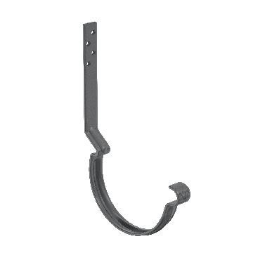 Крюк крепления желоба — цельнометаллический, изготовлен из стали толщиной 4 мм. Обеспечивает силовую поддержку желоба и неизменность его геометрических параметров, создаёт уклон, необходимый для движения воды в заданном направлении. Благодаря ребрам жесткости обладает повышенной прочностью, выдерживает большие силовые нагрузки.