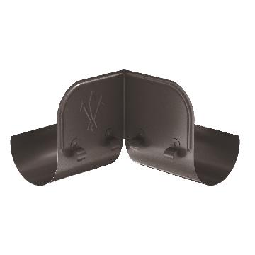 Данный элемент устанавливается во внутренний угол водосточной системы. Высокий край ограничителя перелива располагается на передней части водосточного желоба и фиксируется за его завиток на клипсы, расположенные на наружной части ограничителя.