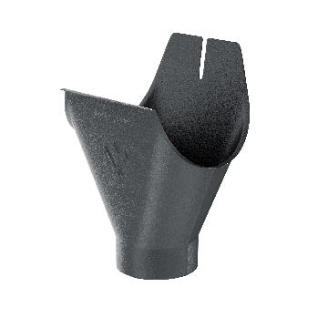 Воронка желоба устанавливается на водосточном желобе и является устройством, передающим поступающую из желоба воду в водосточную трубу. Не требует дополнительных мер по герметизации. Надежность воронки желоба обеспечивается наличием усиленного ребра жесткости в передней части.