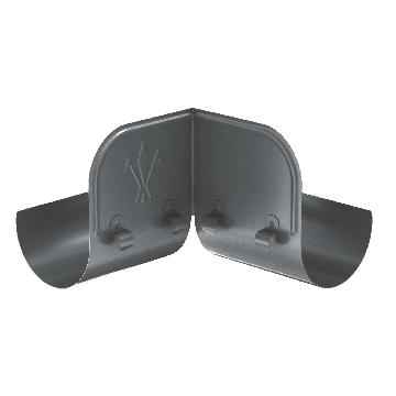 Данный элемент устанавливается во внутренний угол водосточной системы. Высокий край ограничителя перелива располагается на передней части водосточного желоба и фиксируется за его завиток на клипсы, расположенные на наружной части ограничителя.