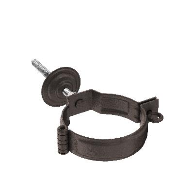 Данный элемент предназначен для монтажа водосточных систем, оснащён одним монтажным декоративным винтом, декоративной петлёй, метизом М10 и декоративной накладкой. Применяется для крепления водосточной трубы к фасаду здания. За счёт наличия одного винтового соединения процесс монтажа существенно упрощается, а наличие дизайнерской формовки увеличивает прочностные характеристики и существенно повышает эстетику всей системы.