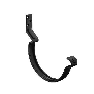 Конструкция крюка имеет более вытянутое и глубокое ребро жесткости, поэтому крюк выдерживает повышенные силовые нагрузки. Передний замок крюка фиксирует завиток желоба снаружи, и благодаря этому желоб удобно монтировать даже после установки фартука-капельника. Задний замок имеет конструкцию, исключающую смещение желоба под нагрузкой. Отверстия под крепеж выполнены с зенковкой под шляпку в потай. На передней части крюка расположен фирменный штамп - лилия.