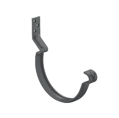 Конструкция крюка имеет более вытянутое и глубокое ребро жесткости, поэтому крюк выдерживает повышенные силовые нагрузки. Передний замок крюка фиксирует завиток желоба снаружи, и благодаря этому желоб удобно монтировать даже после установки фартука-капельника. Задний замок имеет конструкцию, исключающую смещение желоба под нагрузкой. Отверстия под крепеж выполнены с зенковкой под шляпку в потай. На передней части крюка расположен фирменный штамп - лилия.