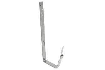Облегчает монтаж водосточной системы за счет расположения фиксатора с внешней стороны крюка, что позволяет устанавливать желоб и после монтажа кровельного материала.