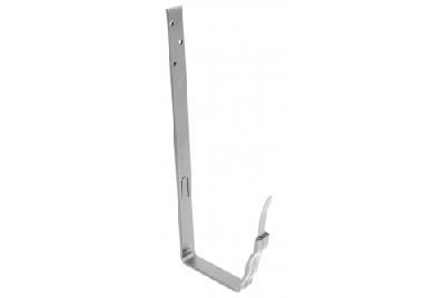 Облегчает монтаж водосточной системы за счет расположения фиксатора с внешней стороны крюка, что позволяет устанавливать желоб и после монтажа кровельного монтажа.