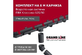 Купить Комплект водосточной системы Классика 120 ПВХ Grand Line, 6 м/3м графит (RAL 7024) по низкой цене самовывозом или с доставкой в г. Смоленск в магазине "Белый Дом".
