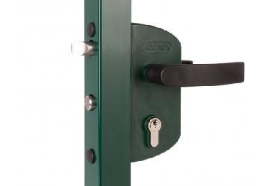 Экономичный замок для ворот и калиток. Корпус - полиамид, механизм выполнен из нержавеющей стали.