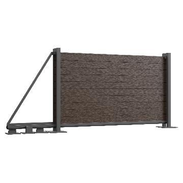 Комплект откатных ворот – это элемент конструкции состоящий из металлических профилей (каркас), уникальных сборных панелей различной модификации с разными типами покрытий, металлических столбов и необходимых комплектующих (за исключением электрического оборудования и фурнитуры) для установки его в конструкцию системы модульного ограждения Aquasystem.