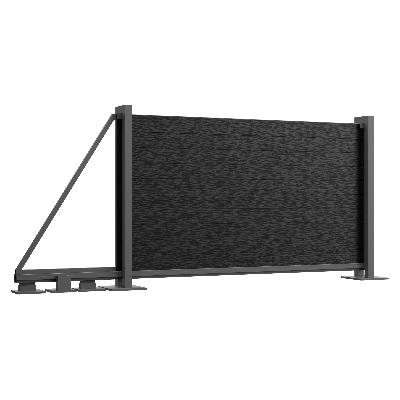 Комплект откатных ворот – это элемент конструкции состоящий из металлических профилей (каркас), уникальных сборных панелей различной модификации с разными типами покрытий, металлических столбов и необходимых комплектующих (за исключением электрического оборудования и фурнитуры) для установки его в конструкцию системы модульного ограждения Aquasystem.