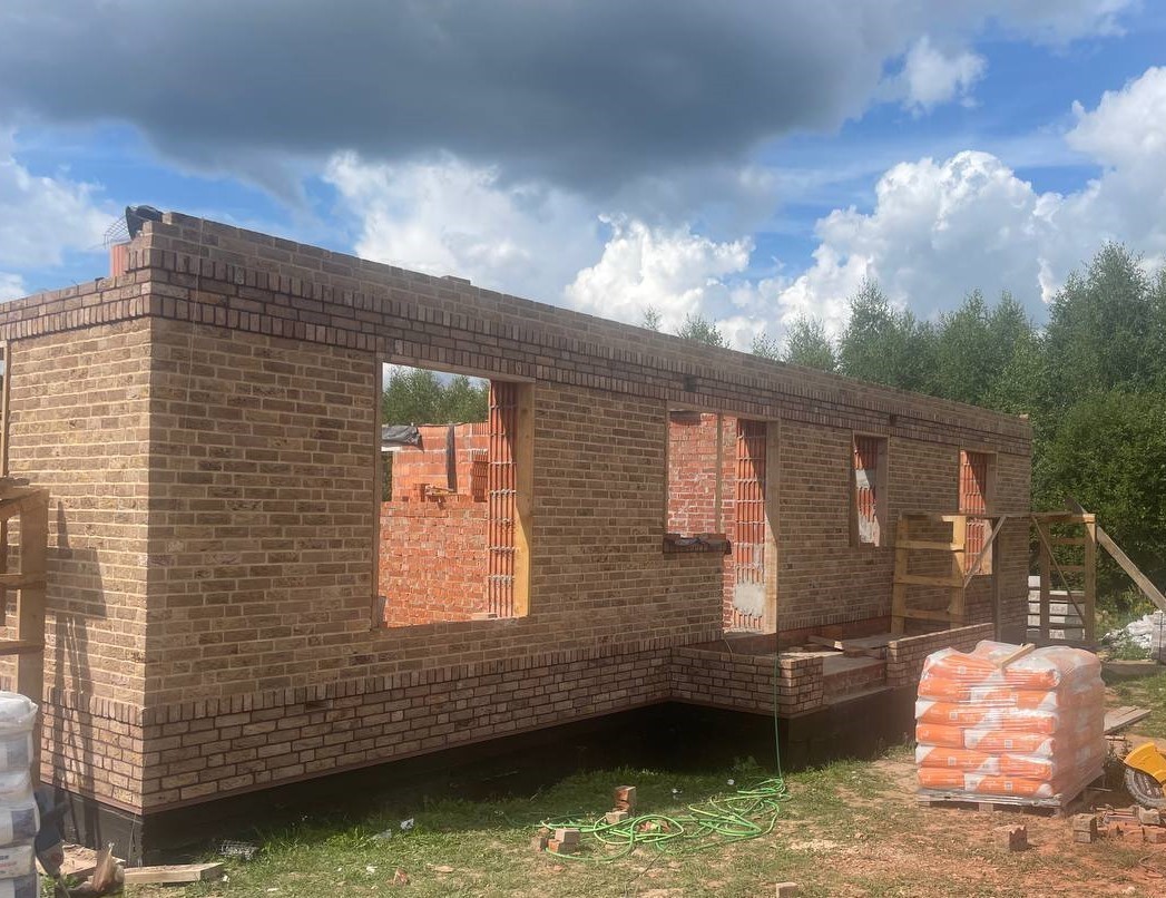 В отделке фасадов применяется полнотелый облицовочный кирпич (размерами 215х102х65) формата WDF ручной формовки Донские Зори "Архангельское".