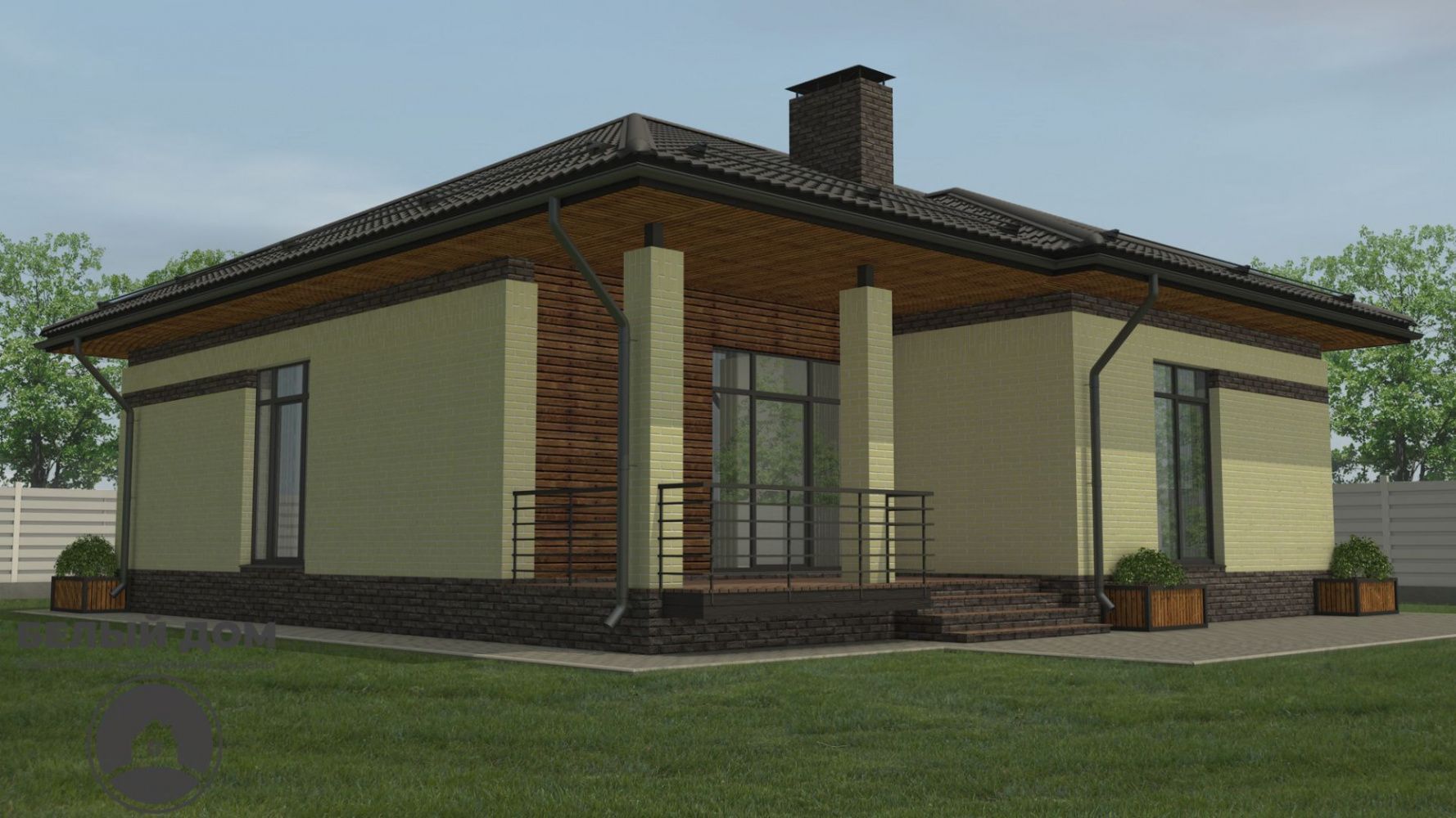 Над окнами применена система подвесов кирпича BAUT Кровля - металлочерепица Kvinta, производитель - Grand Line, покрытие Velur RAL 7024