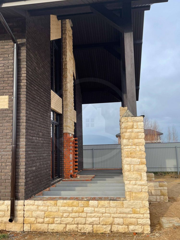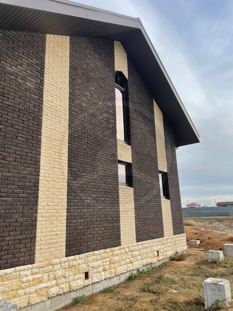 Цоколь выполнять из керамического полнотелого кирпича марки не менее М150 (размерами 250х120х65мм) с последующей наружной отделкой из искусственного камня White Hills (Данвеган 500-10).