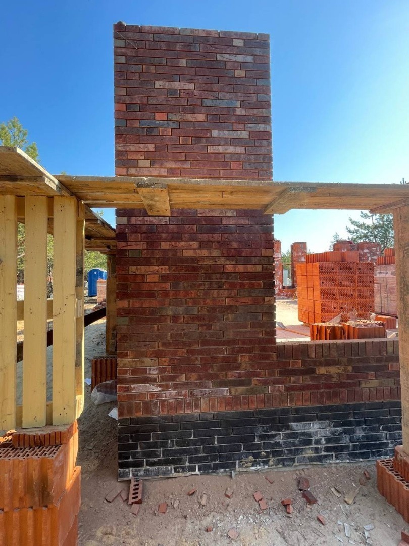 Цоколь - керамический кирпич Modformat "Мальме" на шоколадной цветной смеси Perel