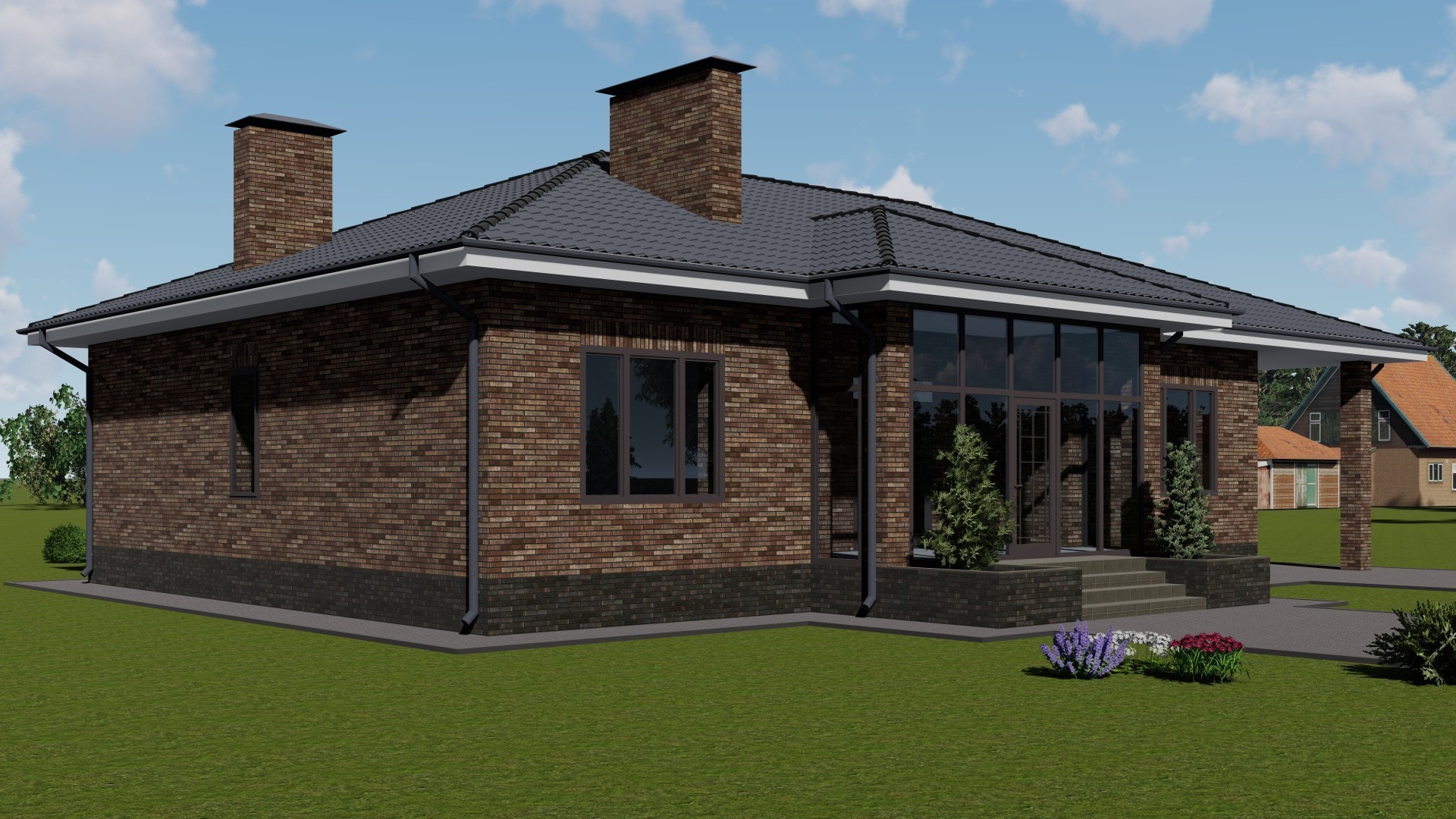 Наружные стены - 38 керамический блок с отделкой из керамического кирпича Modformat "Брюне" на светло - коричневой кладочной смеси Perel
