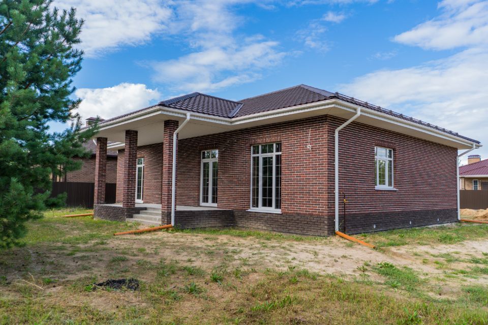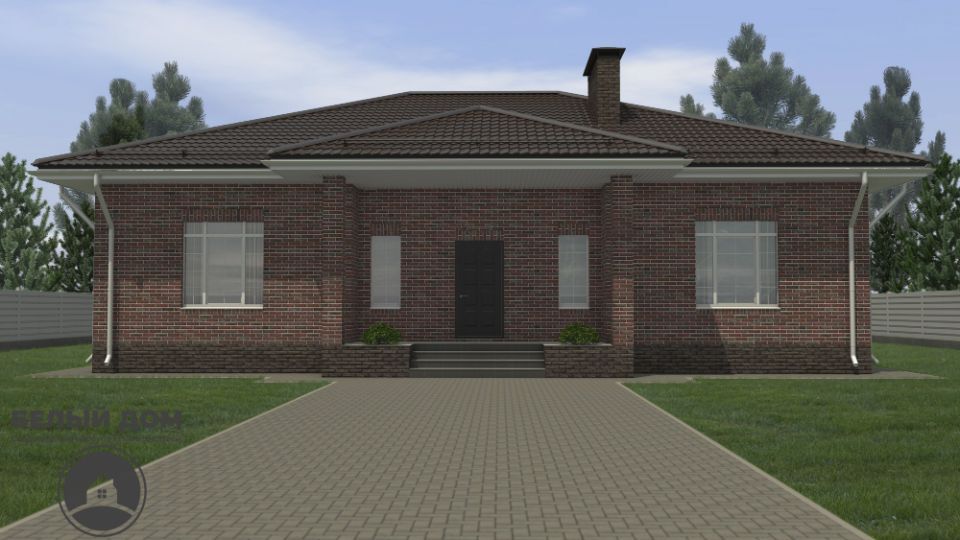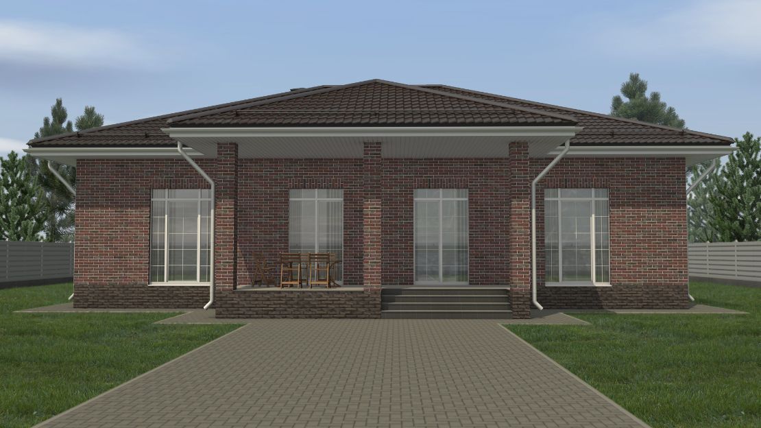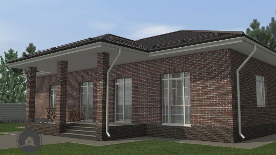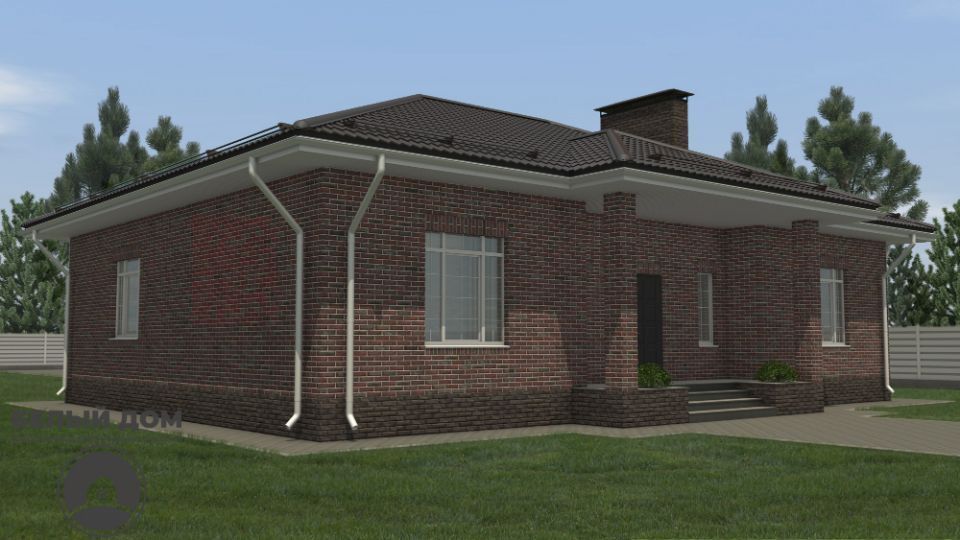 • Над окнами применена система подвесов кирпича BAUT Кровля - металлочерепица Kvinta, производитель - Grand Line, покрытие Velur RAL 7024