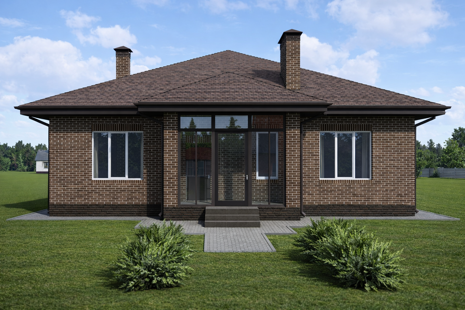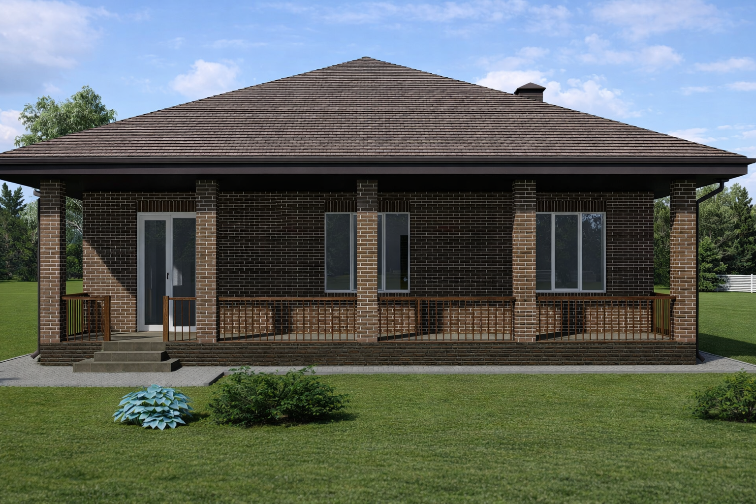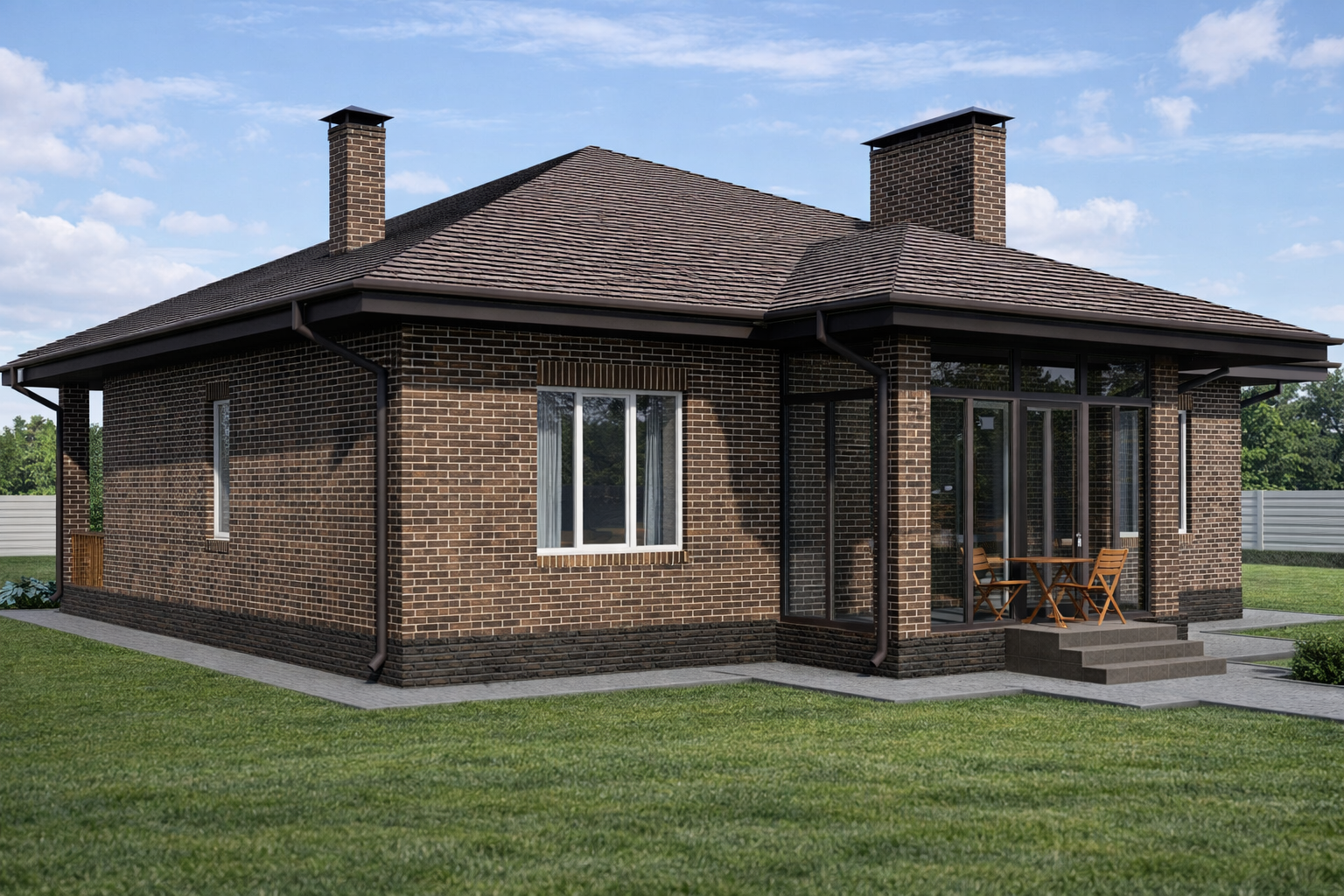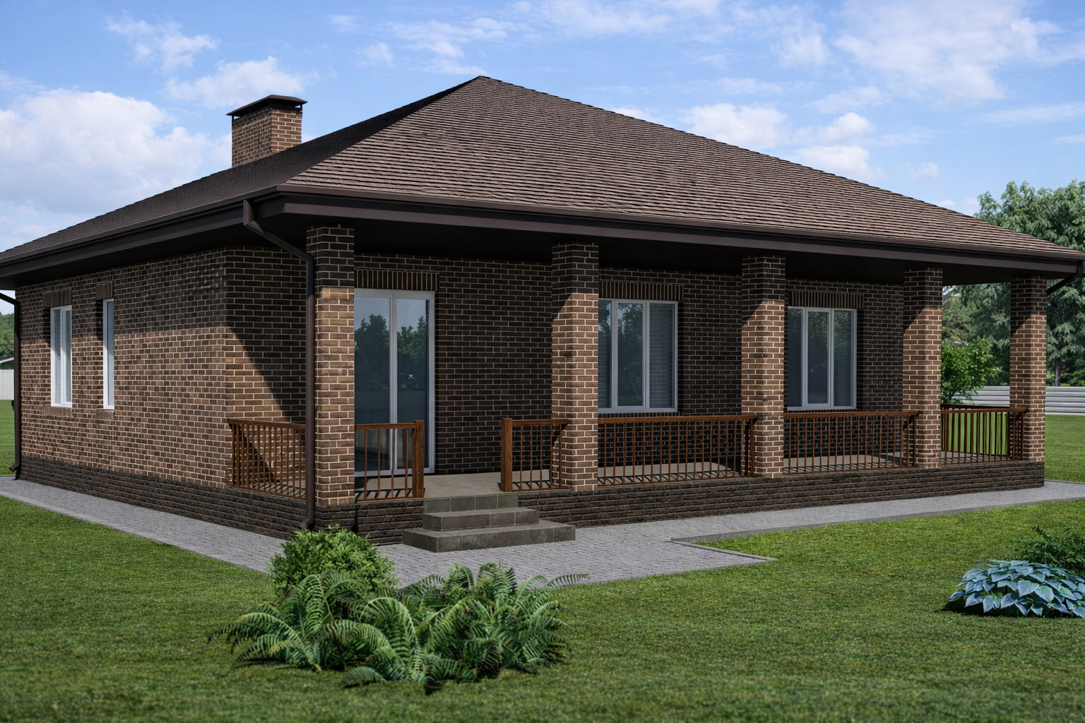 Одноэтажный жилой дом общей площадью 109 квадратных метров. Стены возведены из керамических блоков.