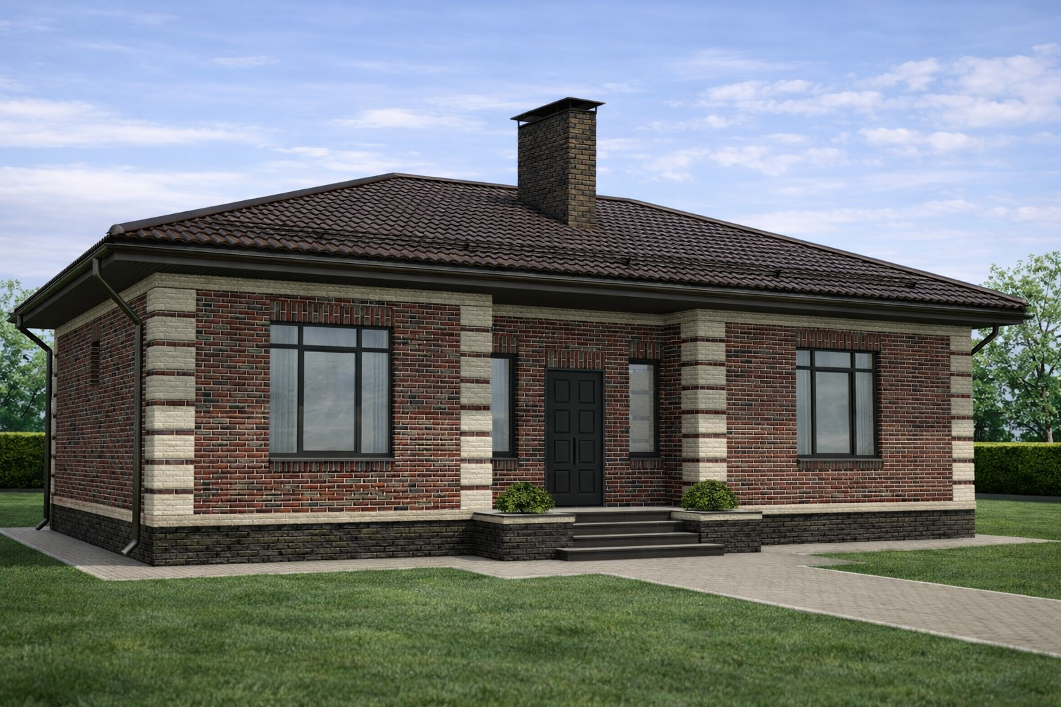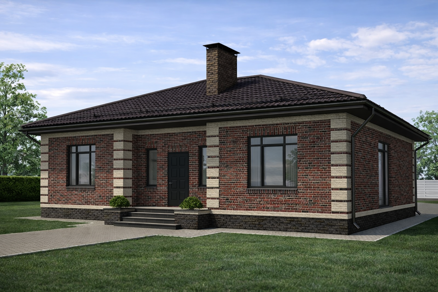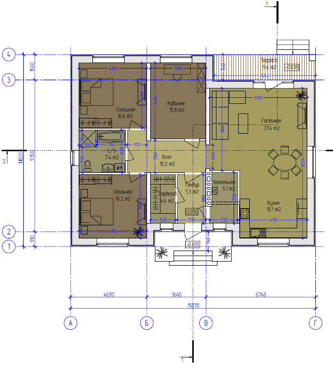 Одноэтажный жилой дом общей площадью 129 квадратных метров. Стены возведены из керамических блоков