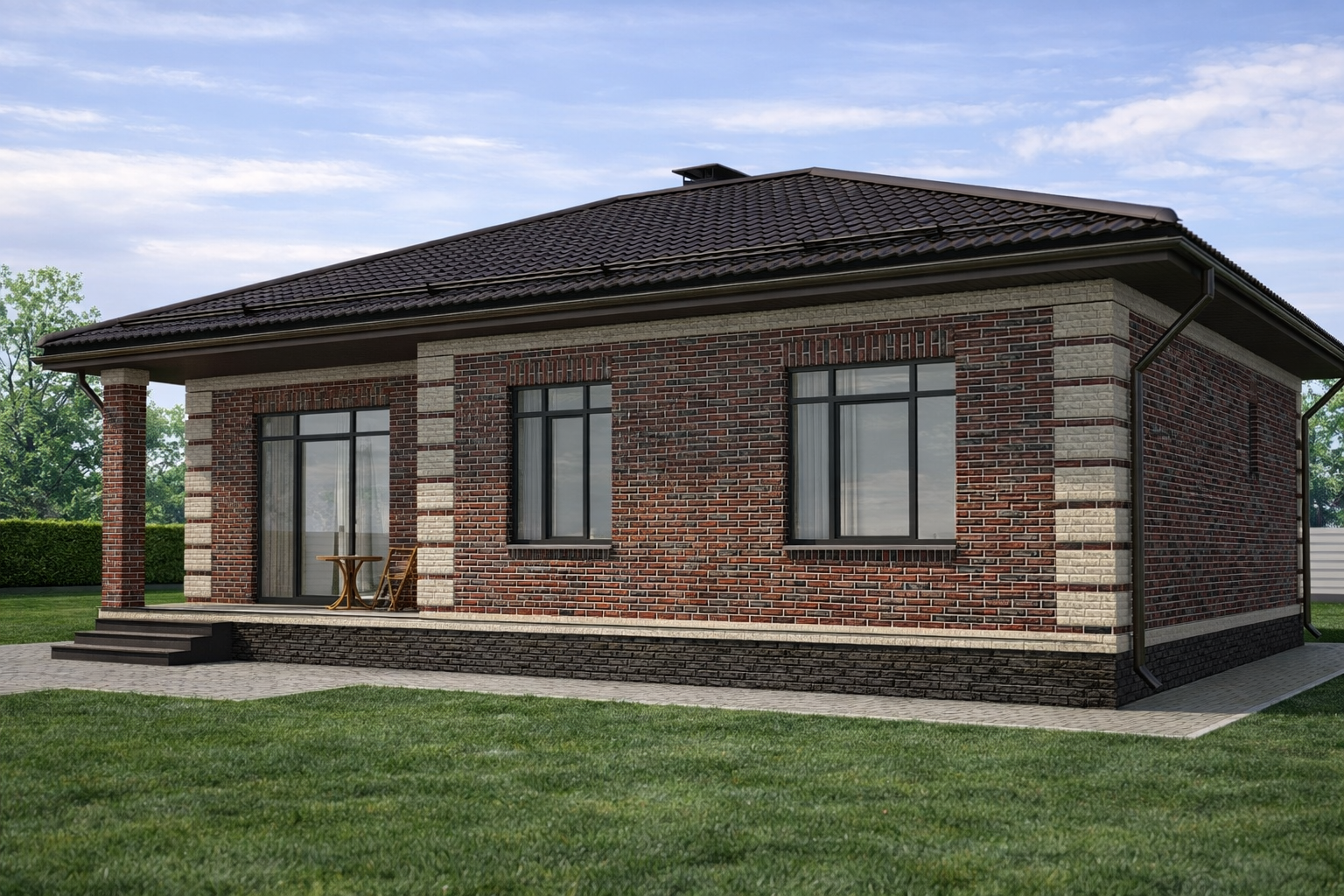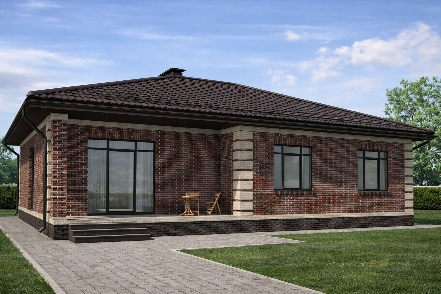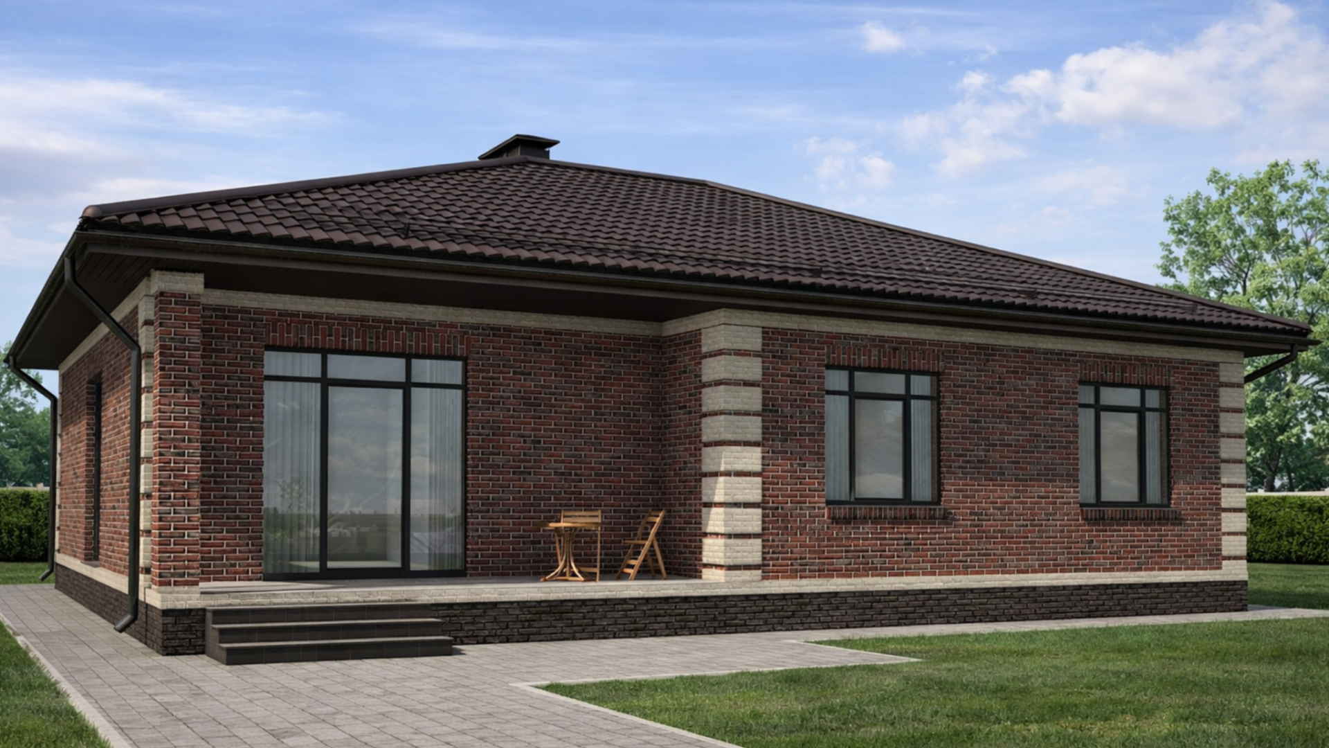 Одноэтажный жилой дом общей площадью 129 квадратных метров. Стены возведены из керамических блоков