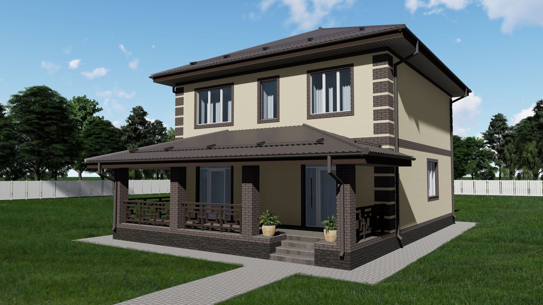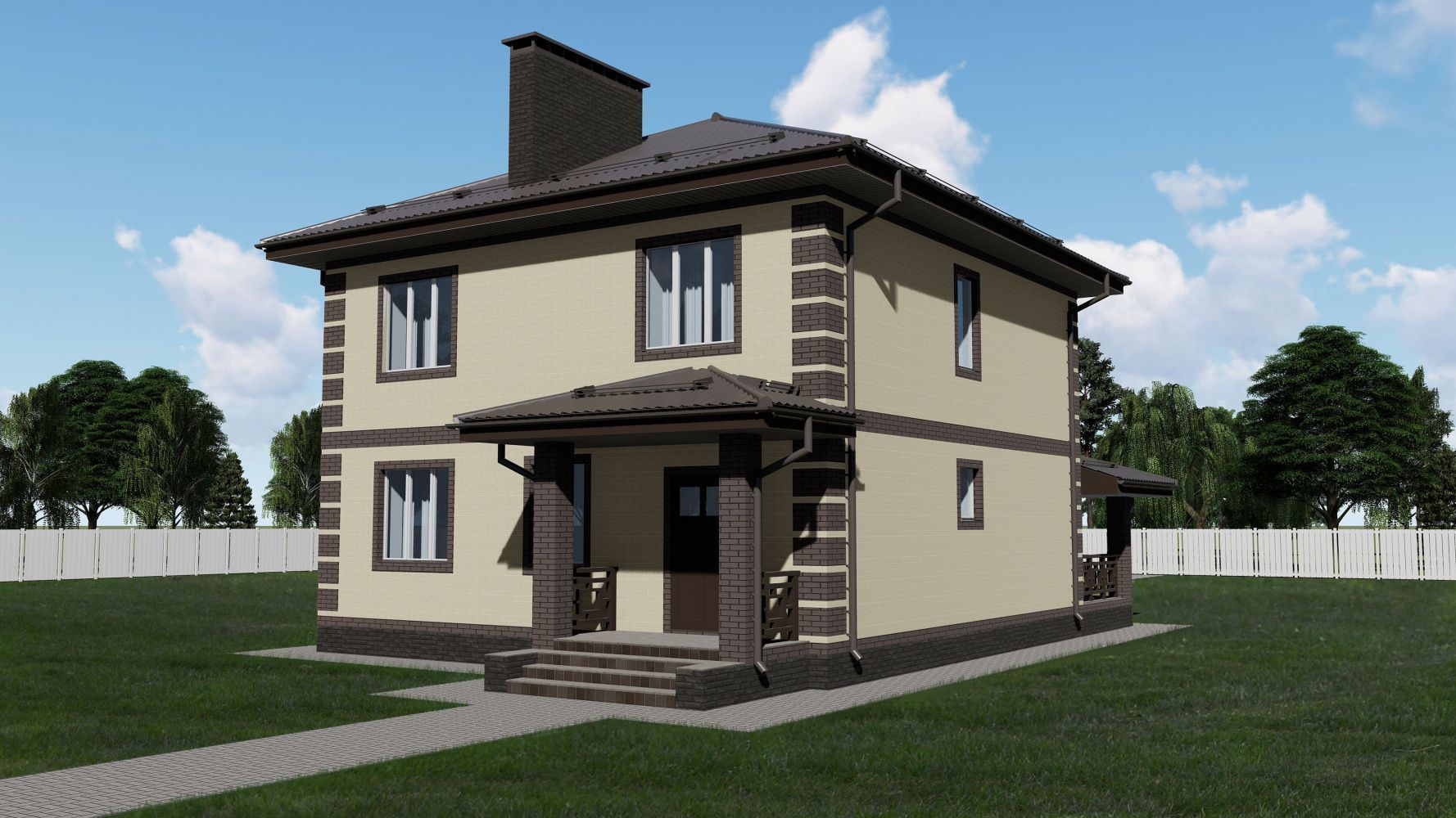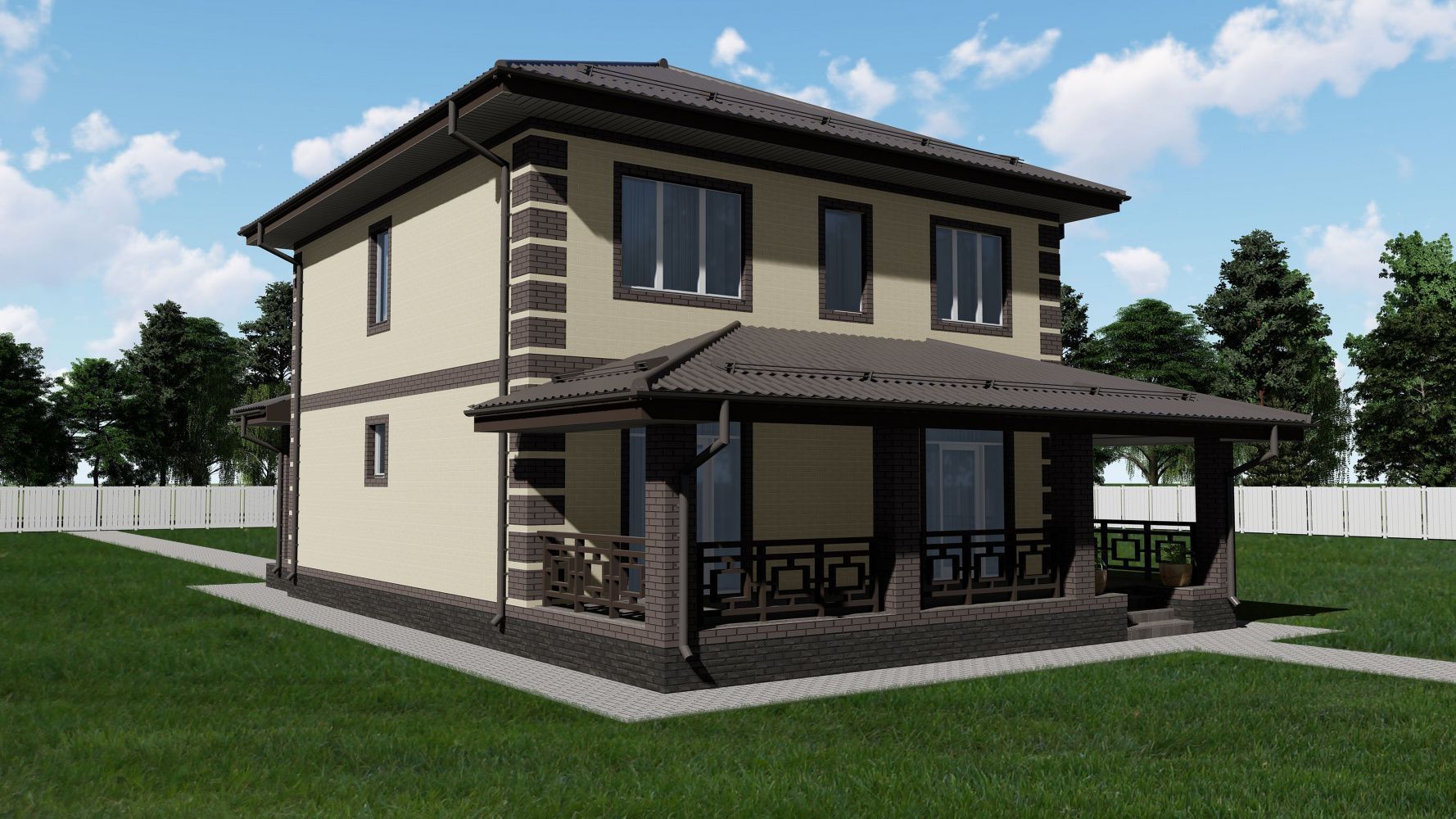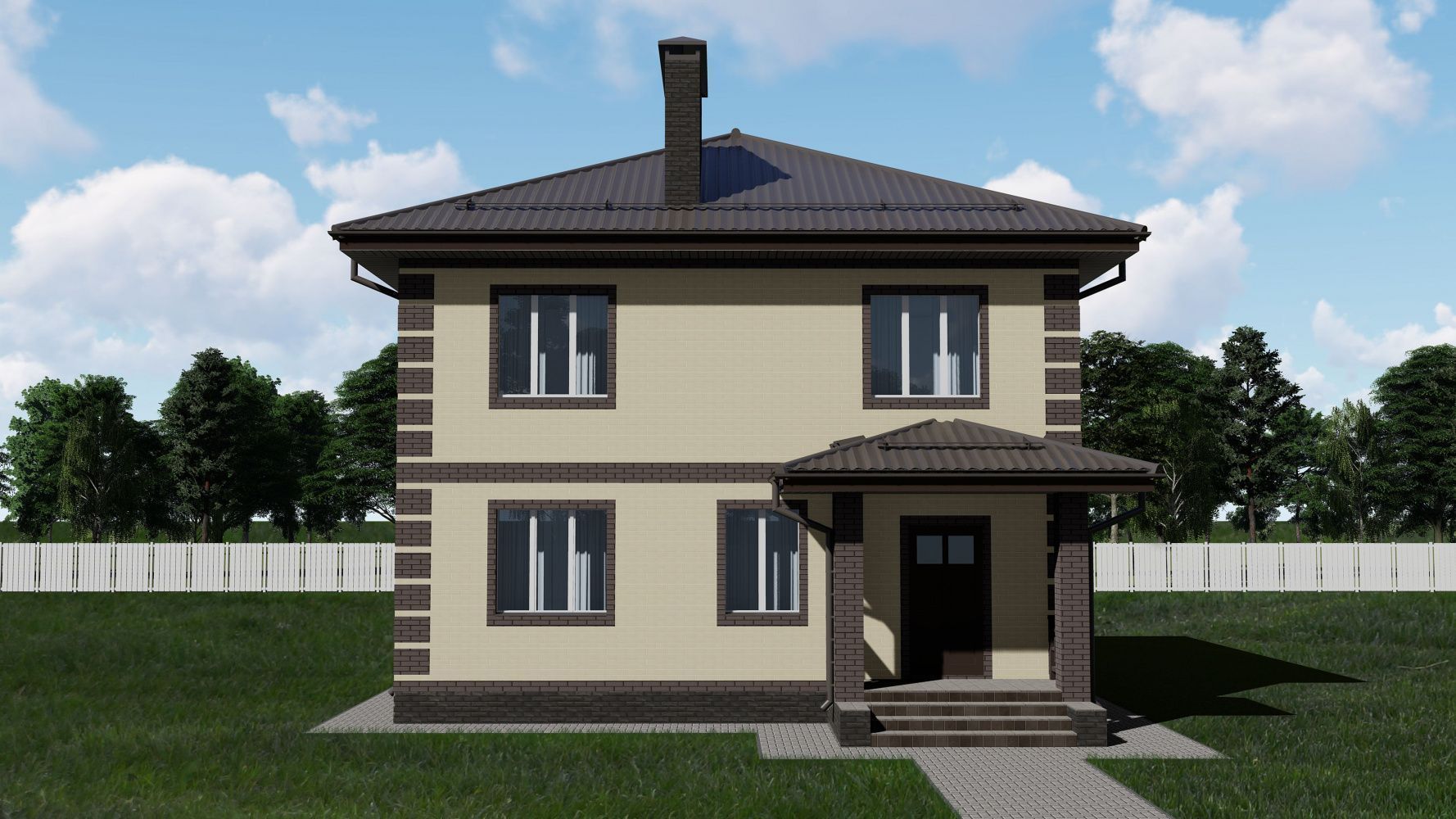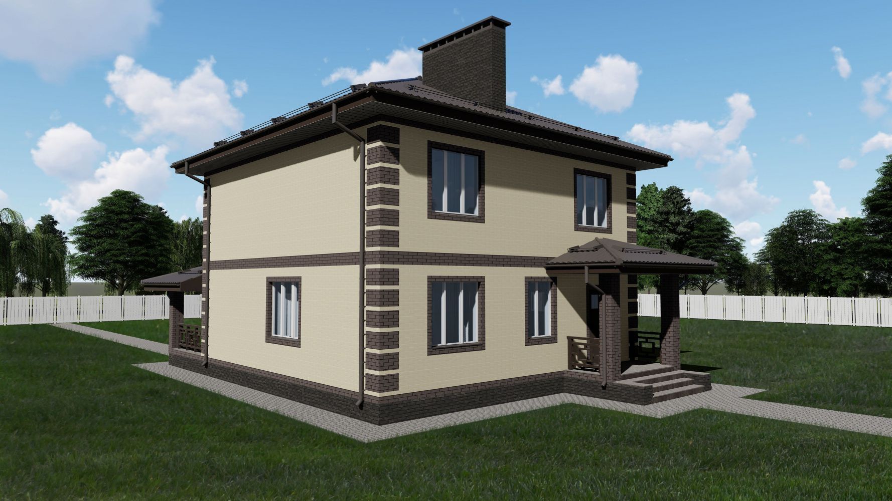 Наружные стены из керамических блоков с отделкой облицовочным кирпичом TEREX "Слоновая кость" и обрамлениями оконных и дверных проемов, рустами из облицовочного кирпича TEREX "Какао".