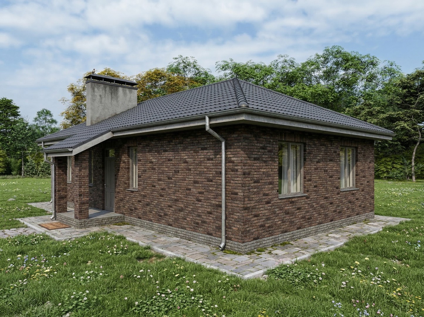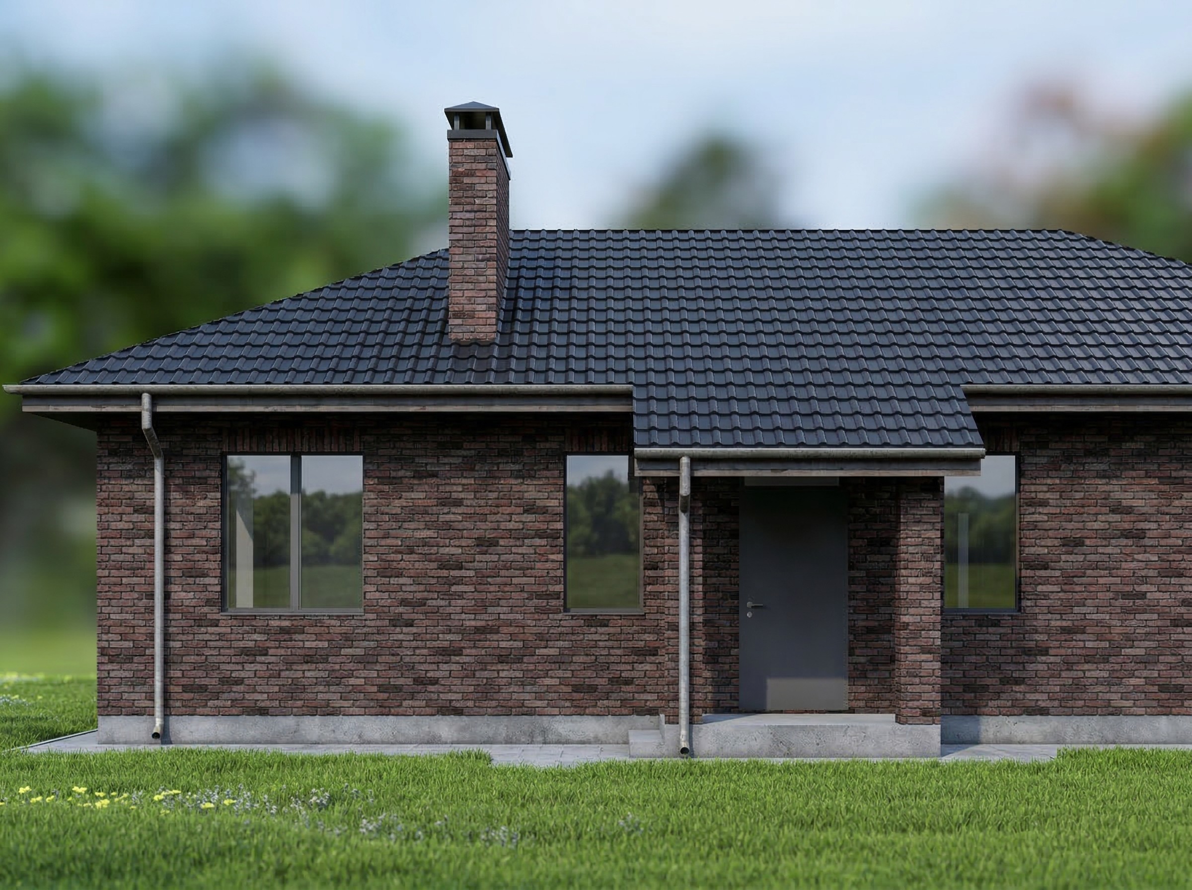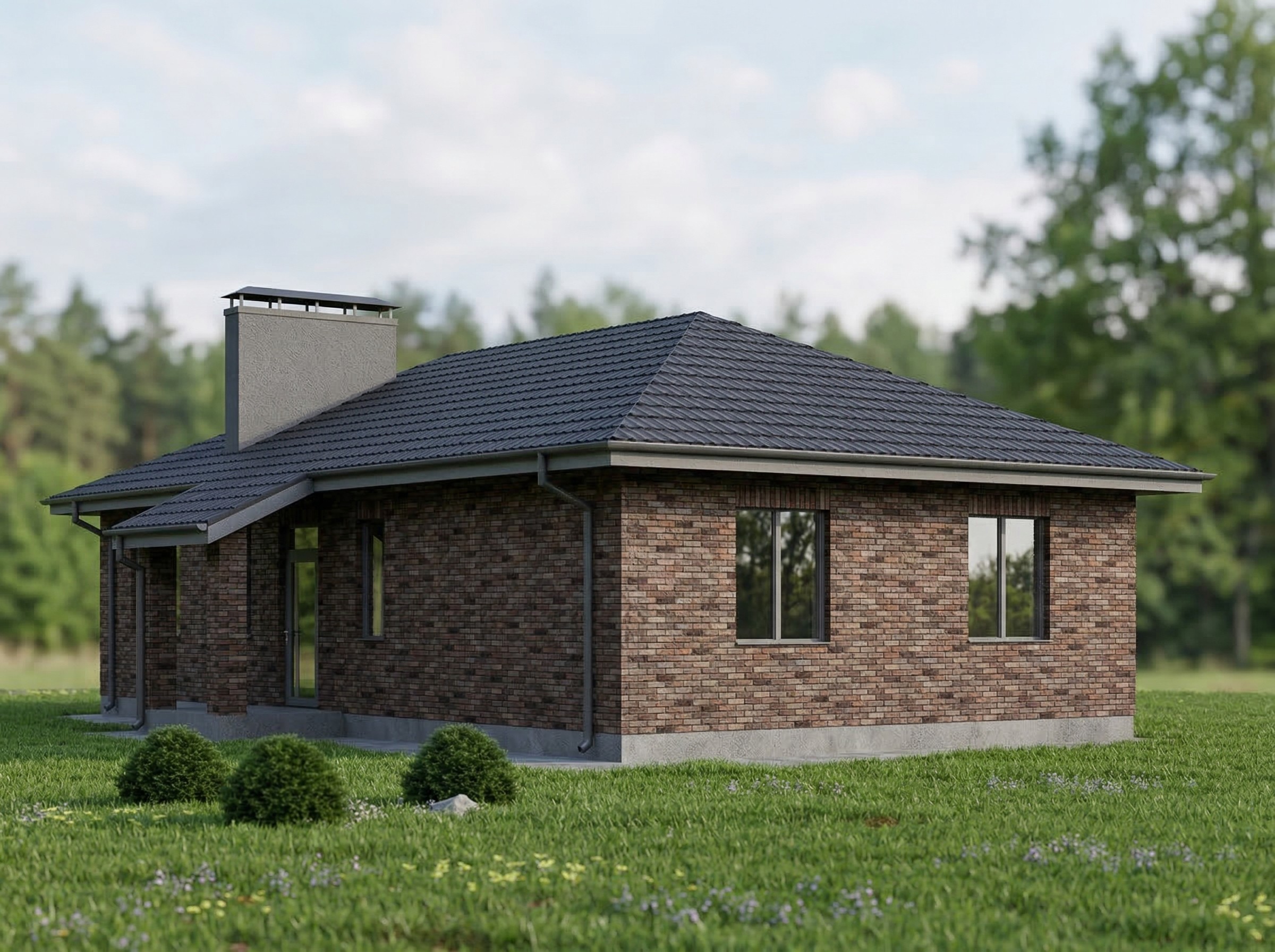 Одноэтажный жилой дом общей площадью 220 квадратных метров. Стены возведены из керамических блоков