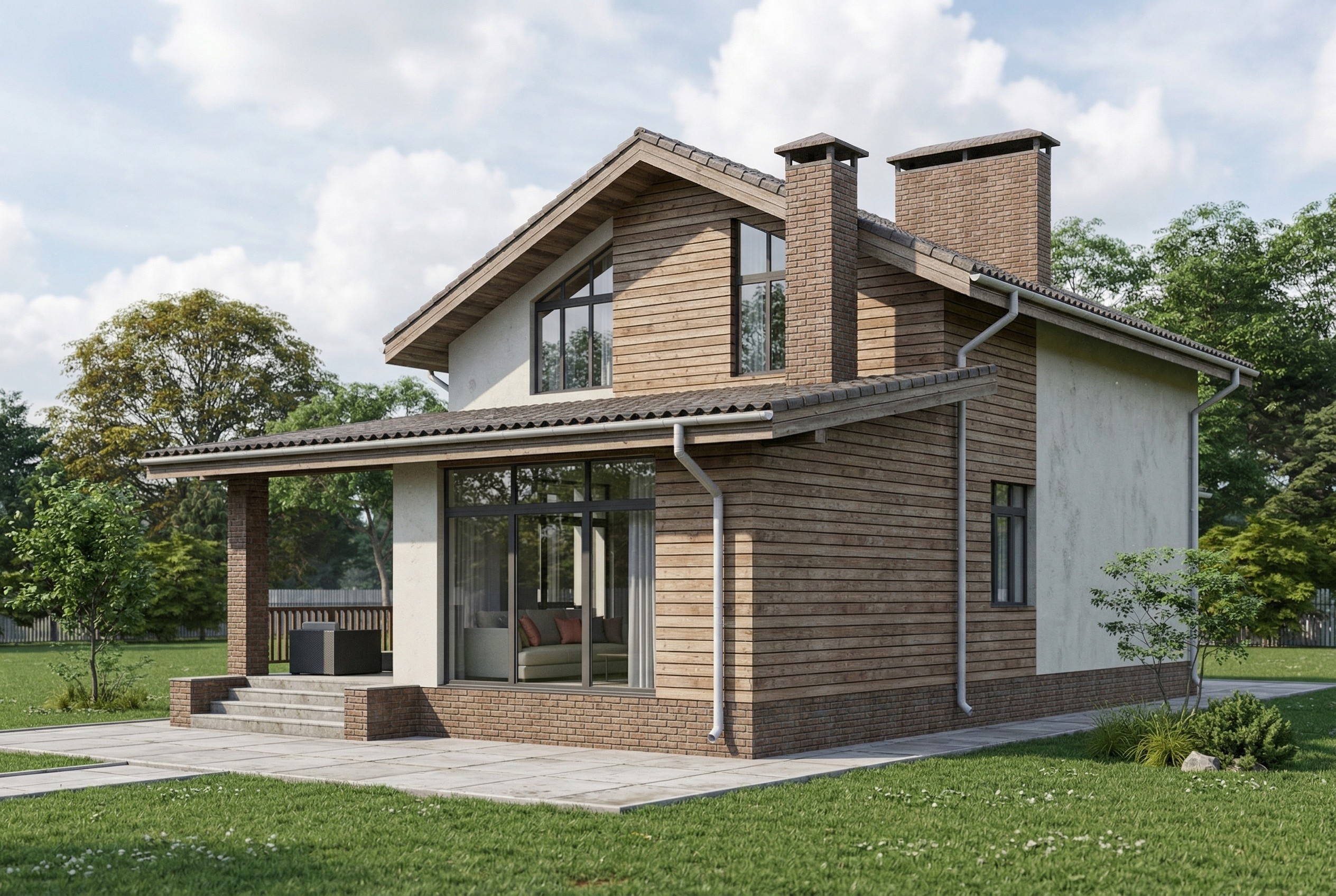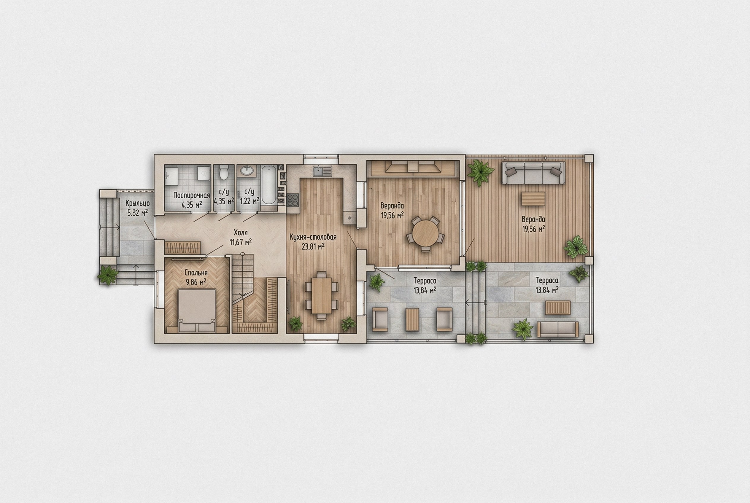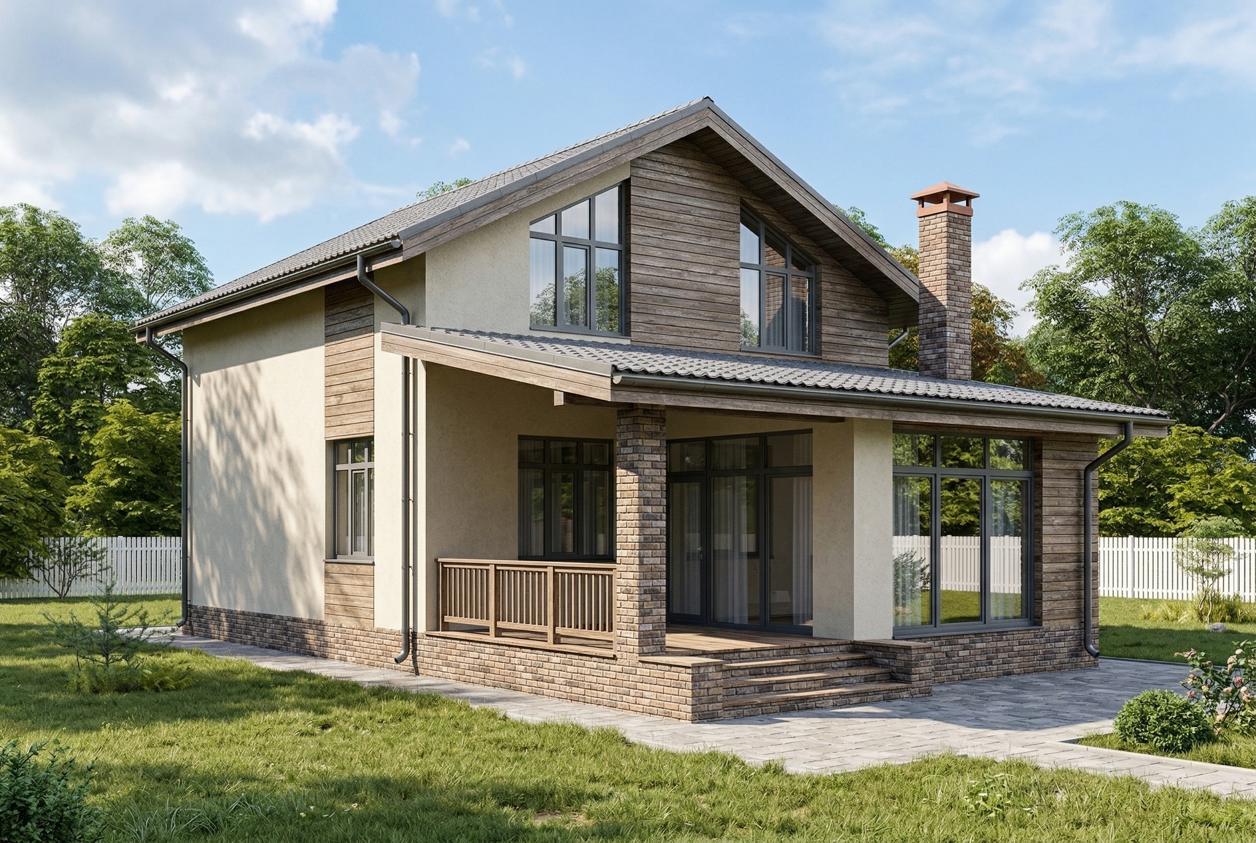 Одноэтажный жилой дом общей площадью 220 квадратных метров. Стены возведены из керамических блоков
