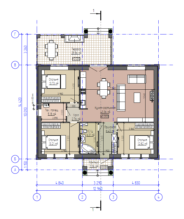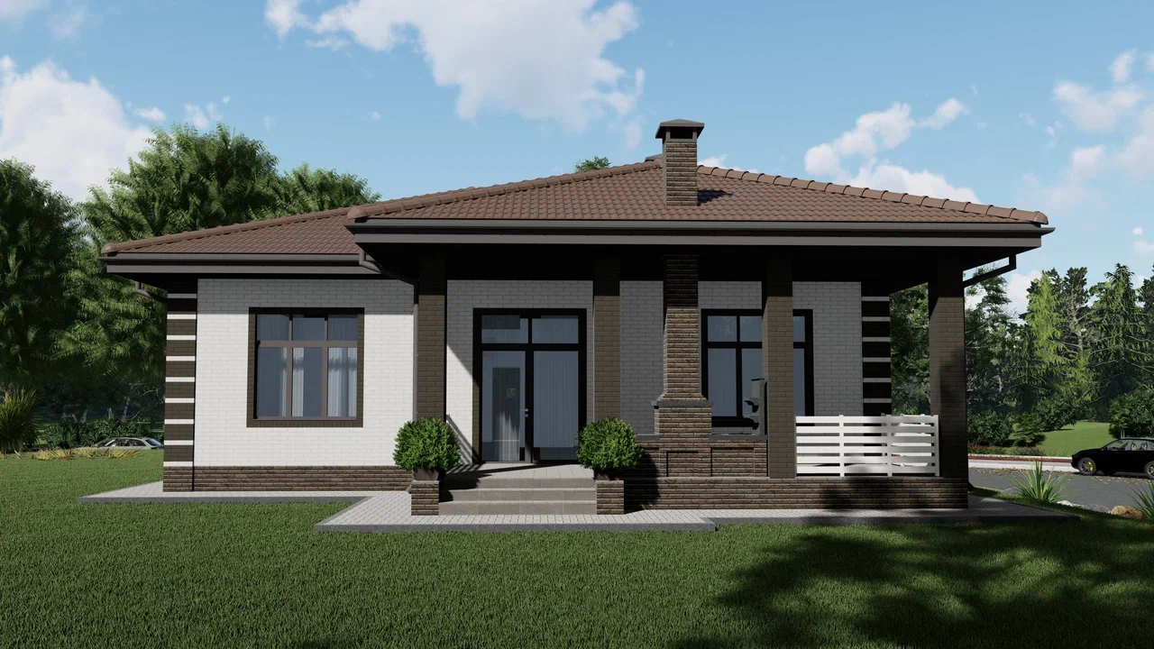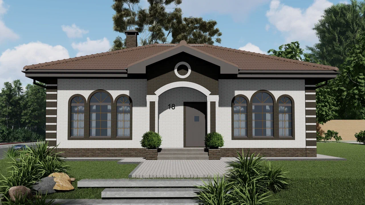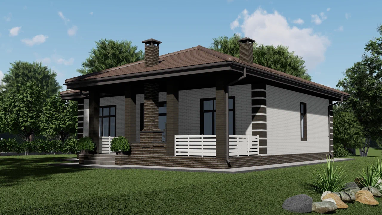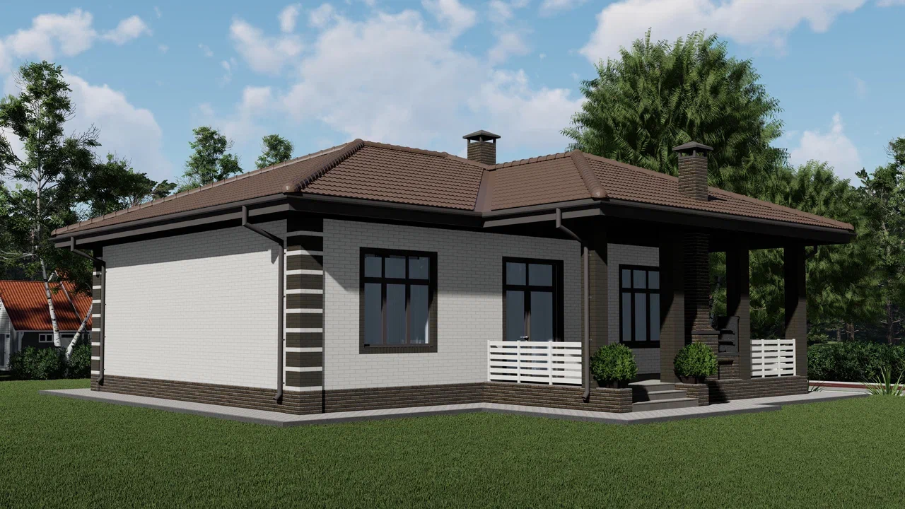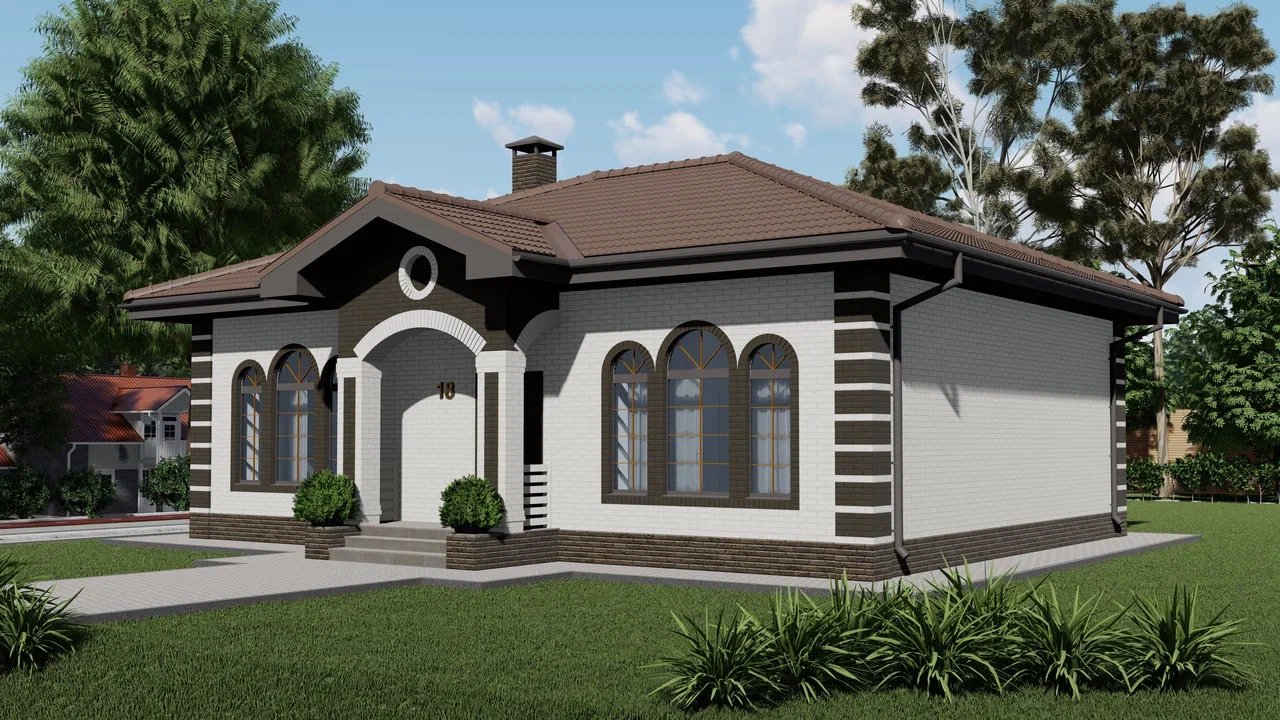 Одноэтажный дом, 104 м², стены из керамзитобетонных блоков.